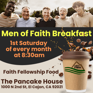 Every 1st Saturday of the month, Men of Faith gather for breakfast starting at 8:30 am. All guys are welcome to share in this good time of friendship and grub! The breakfast fellowship includes a bible devotional on everyday issues men face, and how God works in our lives and family. It’s a great connection place for being real and open. The men support one another in prayer.